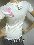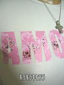 ●ピンクのAMOREのロゴにラメ入りのハイビスカスがプリントされ、キラキラとしたラインストーンが散りばめられた とてもかわいいTeeシャツ
