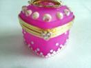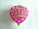 ハートのピンクのアクセサリーケースに、王冠やスワロフスキーでキラキラに仕上げました★