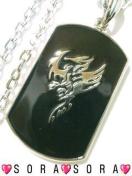 【プラチナ】ブラックトライバルプレートネックレス 箱付
