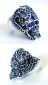 ・スカルの目や髪に青いジルコニアが入ったリングです。