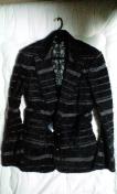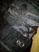 やや厚手のパイル地を使用しラメが織り込まれたラインとのボーダーパターンデザインです。ポケット部分には同色のスカル刺繍、ボタンはスカルのメタル釦、裏地はコレクションラインならではのメッシュ地のスカル総柄、袖裏は白黒のレオパード柄のメッシュ地で着心地よくそして高級感も感じられる逸品です。