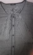 今年3回着ました変わった色合ぃのグレ-系〜黒ギンガムチエック柄〜裾はフリルに飾りボタンで首回りにはミニ糸レ-スで可愛さ炸裂o(^-^)o
