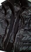 ヨーク部分にレザーの切替し、前はリブニットのレイヤードで袖、裾も同じ感じです。防寒性も高く着膨れ感のないタイトなシルエットでとてもかっこいいです。