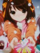 ハルヒの持つチョコレートについているカードに書かれた言葉は