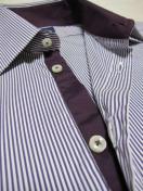 白地に小豆色(濃い紫)のストライプが入ってます。