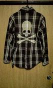バックにはでかく擦れスカル、そのスカルを囲むようにでかめのスタッズが打たれてます。前は胸にワッペン、前立ての裏側はレオパード柄です。 サイズ42ですが若干大きめなので普段44の方におすすめです。