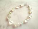 乳白色のムーンストーンと、ペリドット、プレナイト、アクアマリンを使ったブレスレットです。
