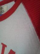 カラーとデザインがカジュアルでアメカジを意識したイメージのロンTトラッドさもプラスされたアイテムですサーマル生地でストレッチが利いているので上半身をタイトにみせてくれますラグランタイプなので肩のフォルムをきれいにみせてくれて調和のとれたシルエットにしてくれます