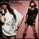 着回しが出来るスカル柄ストーン飾りドルマンTシャツ