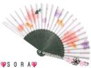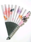 幻想的な泳ぐ金魚が描かれた艶やかな扇子にカメリア.薔薇.高級ラインストーン等を