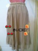 ○淡い茶系(濃いベージュ)のプリーツスカートになります。