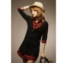 カーディガンхチェックシャツのレイヤード5分袖シャツ