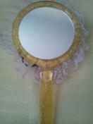 イエロー手鏡にカメリアやパールを付け、フラワーたっぷりの女優鏡風に仕上げました(^o^)/