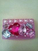 ピンクのハンコケースに、スワロとビジューとパールを付けました★