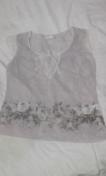 3回着ました全体色は淡く渋ぃ混合な落ち着ぃたピンク色〜ベ-ジュ&裾に白ぃ薔薇にシフォン素材が上品〜珍しぃVネックでフレア-な形が素晴らしぃ〜袖幅レ-ス&首回りミニレ-ス&リボン結び可愛くてvネックの開きが調節〜シフォンなので透明感あり無地キャミ等を着て色重ねて楽しんでも◎〜花柄&数ヶ所小さぃ水玉も可愛く優雅な雰囲気を演出o(^-^)oMサイズ バスト79〜87cm 身長154〜162cm本体ポリエステル100%