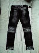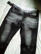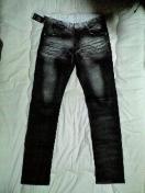 ベルトループと後ろ右ポケット上にスタッズ、コーティングにより立体感あるヒゲや皺加工がされているかのように表現されてます。