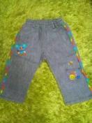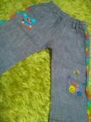 ジーンズのような生地ですお色はグレーカラフル刺繍が映えてます