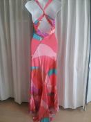 【ピンクオレンジ系プッチ幾何学柄セクシーマーメイドサテンロングドレス】