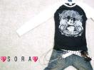 フロントにミッキーがプリントされたラグランロングTシャツ♪♪