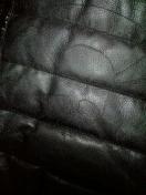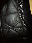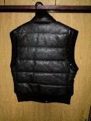袖口はエナメルパイソンとリブの切り返しで胸にはクロスボーン、バックにもわかりずらいですが表面を削いでスカルがデザインされたかっこいいダウンベストです。裾のリブ上部分の表面を削いであるようなのは加工によるもので元々のデザインです。