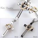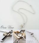 1粒のジルコニアをのせたクロスにゴールドのハートモチーフが架けられたネックレス