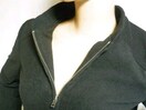 シンプルな襟元は伸縮性に優れたリブ素材なので首元を優しく包んでくれます