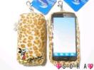 ディズニー【ミッキー】ポーチ入れたままタッチ操作可能♪ヒョウ柄スマートフォンポーチ