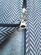 ファスナーは、下からも開けられる〓WZIP〓です〓。襟は、釦で閉めて立てても、開いて折ってもカワイィです〓。山吹色の〓マーク刺繍〓印象的〓。