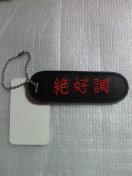 チェーンのサイズは、約15p(伸ばしたら)・文字のサイズは、約1×1p・ブラックの部分のサイズは、約9×3pです。