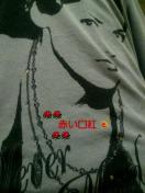 長Tプリントのネックレス部分に透明ストーンが光る!