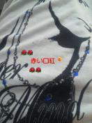 長Tプリントのネックレス部分にブルーのストーンが光る!