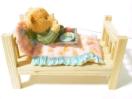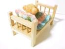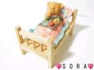 木製の手作りベッドと樹脂製くまさんが超CUTE
