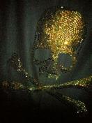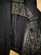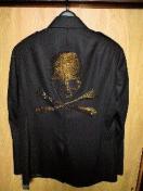 タイトなシルエットのテーラードジャケットのバックには豪華にゴールド系スワロフスキーによるグラデーションスカル。抜群のインパクトと高級感がありまた生地にも近くで見なければわからないですが細かいラメ糸が織り込まれている手の込みようです。