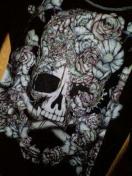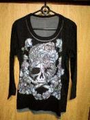 繊密なスカルの手描きプリントがアートな7分袖カットソーです。
