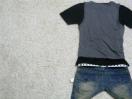 Tシャツはラメ入クロスプリント等のデザインで一枚でも使えちゃいます