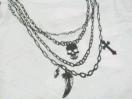 チェーンネックにスカル&フェザープリントされたTシャツ