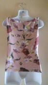 肩はリボン結びで長さ調整可能。胸元ロゴ入り、ピンク地にフラワー柄、更に夏に嬉しいパイル素材で