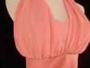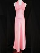 綺麗なピンク高級サテンシフォンホルターロングトレーンドレスフリルシルバーストーン美形ラピス