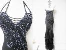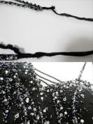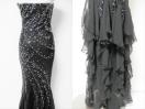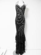 EauSouageブラックビーズビジューシルクフリルマーメイドロングホルタードレススパンパール