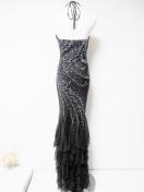 高級胸元セクシーエレガント美しいビーズ流れキラキラロングドレス絹リボンフリルゆらゆら