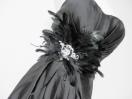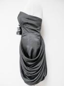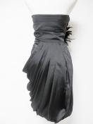 高級光沢サテンミディアムパーティーベアドレスフェザーエレガントドレープコクーンワンピ黒主役