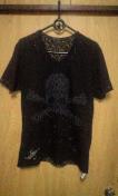 前後にクラッシュ加工を施し裏地にレオパード柄を使用する事でクラッシュ部分からレオパード柄が見えるようになっているデザイン性の高いTシャツです。前にはレオパードスカル。