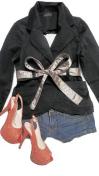 ブラック黒JKカーキサテンリボンお洒落ジャケットフォーマルカジュアル仕事スーツスカートワンピ