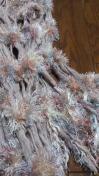 ベージュブラウン系のフリンジつきおしゃれなマフラーをお安く。暖かさとデザイン性を兼ね備えたお品です。この冬にアレンジでおしゃれに。