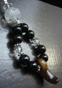 手彫りの龍彫水晶にオニキス、タイガーアイ勾玉をあわせました。