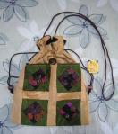 タイシルクの光沢としぼり染めの飾りがかわいい、どこか和風なかばんです。