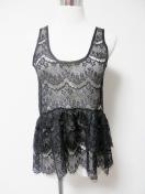 ブラウン黒レース重ね着2WAYペプラムヌーディータンクトップラピスLapis