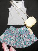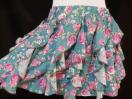 緑ピンクバラローズ小花柄フリルフレアミニスカートLapisラピス