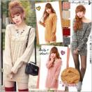 胸元にキュートなポンポン付きのケーブル編みニットワンピ