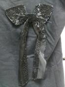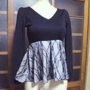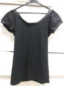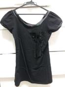 【ANAPLATINA黒ビーズリボンボートネック丈長め半袖トップス】